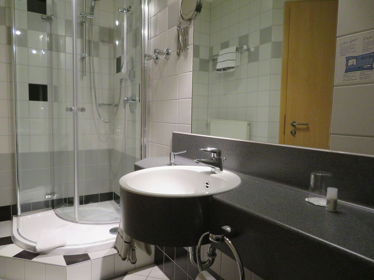 • das Badezimmer verfügt über eine Dusche (Regendusche) oder Badewanne, Kosmetikspiegel und Föhn