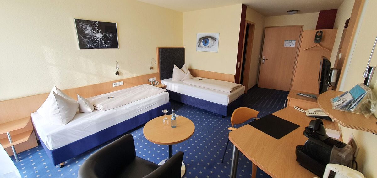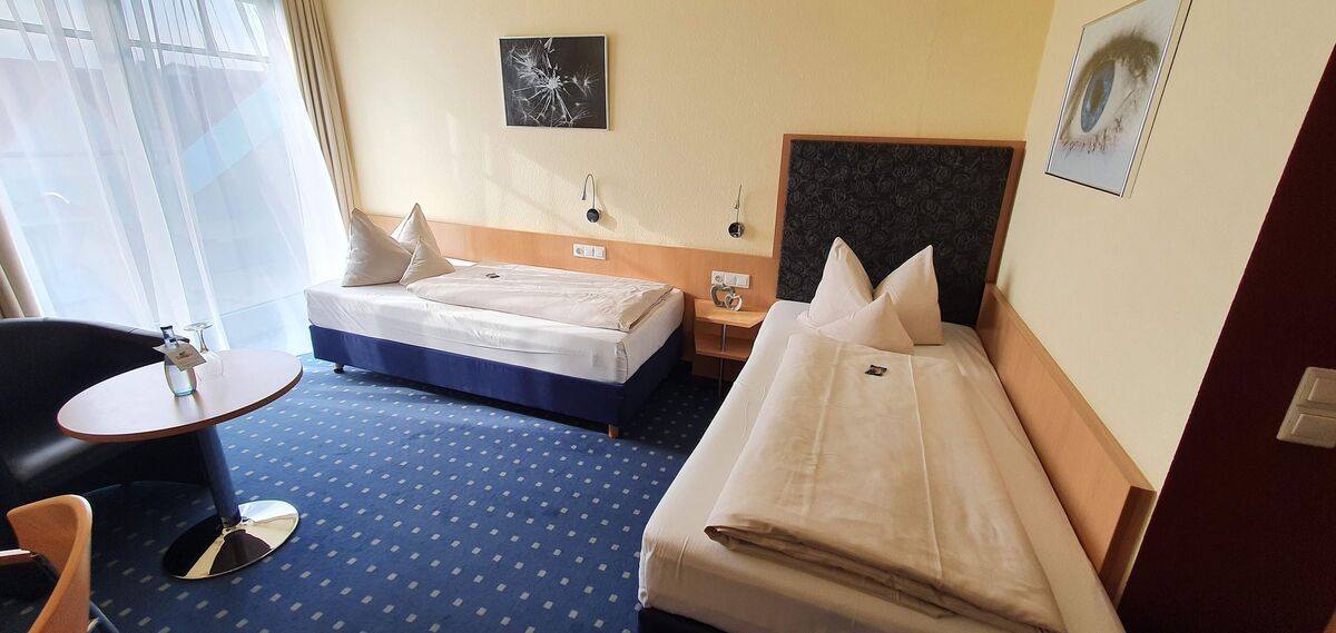 Unsere Doppelzimmer sind verfügbar mit 2 Einzelbetten oder einem Queen Size Bett (160 cm x 200 cm)